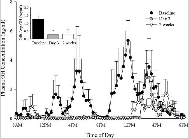 In a 2-wk overeating period trial of seven healthy men, Cornford et al. (2011) reported that: “only a few days of overeating suppressed 24-h GH concentration by approximately 80%”.