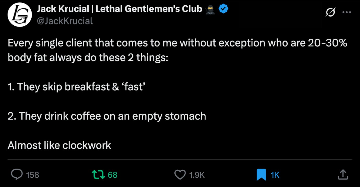 Over the weekend, Jack’s post on X articulated what many in our space have observed for years: intermittent fasting is not the holy grail for physique optimisation or health & performance.