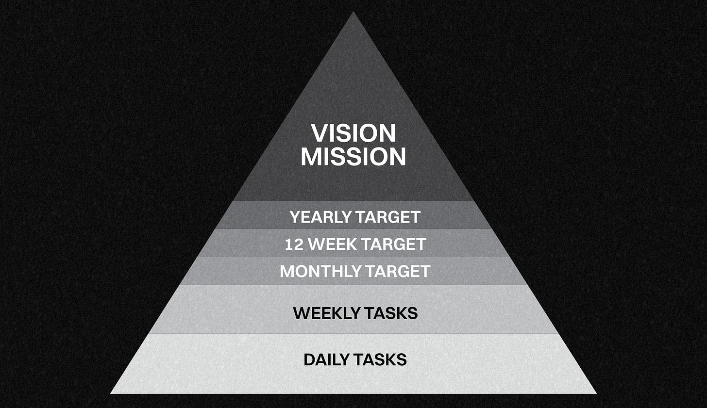Everything below this tier is about breaking down that one big target into daily action.